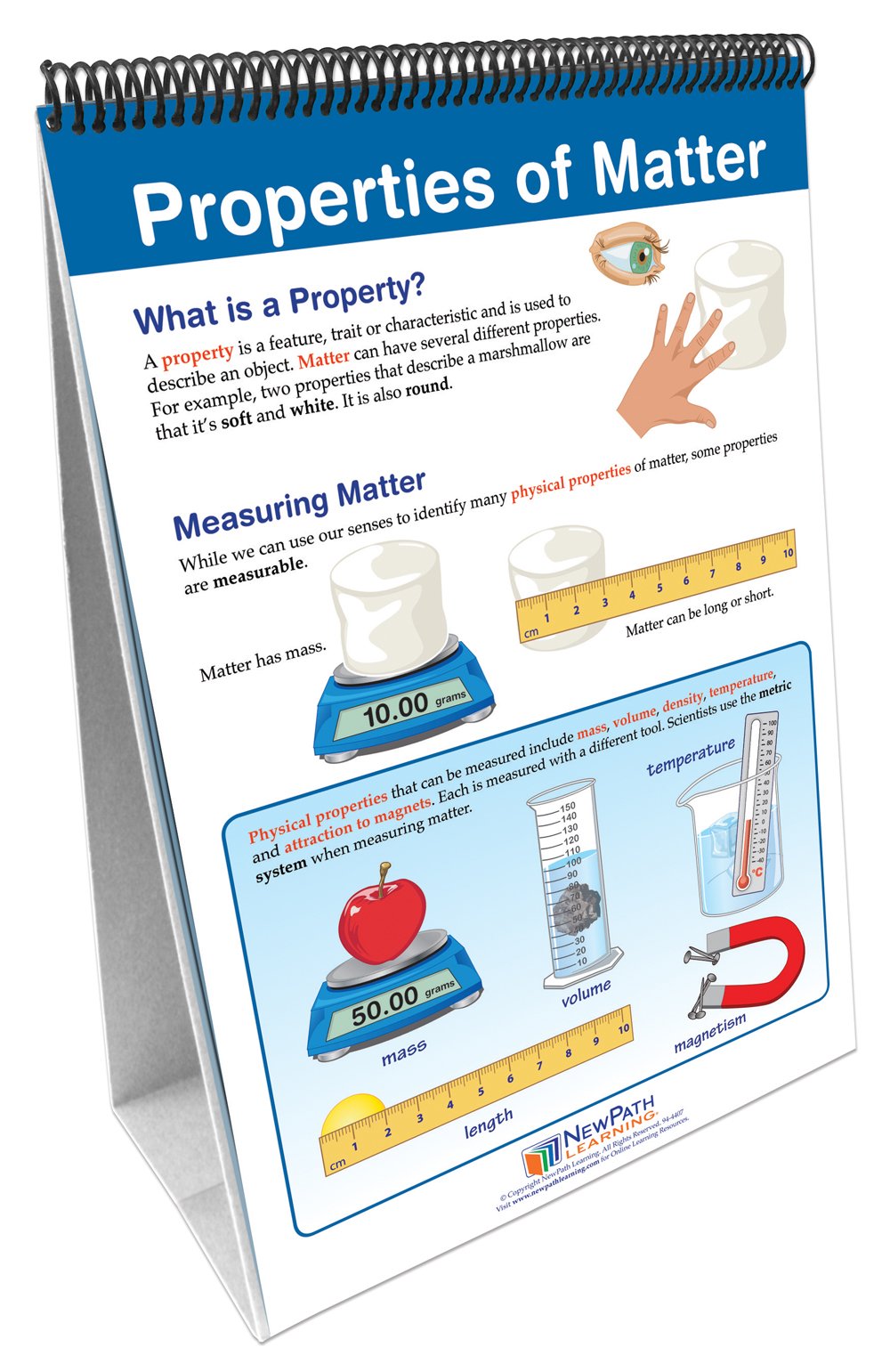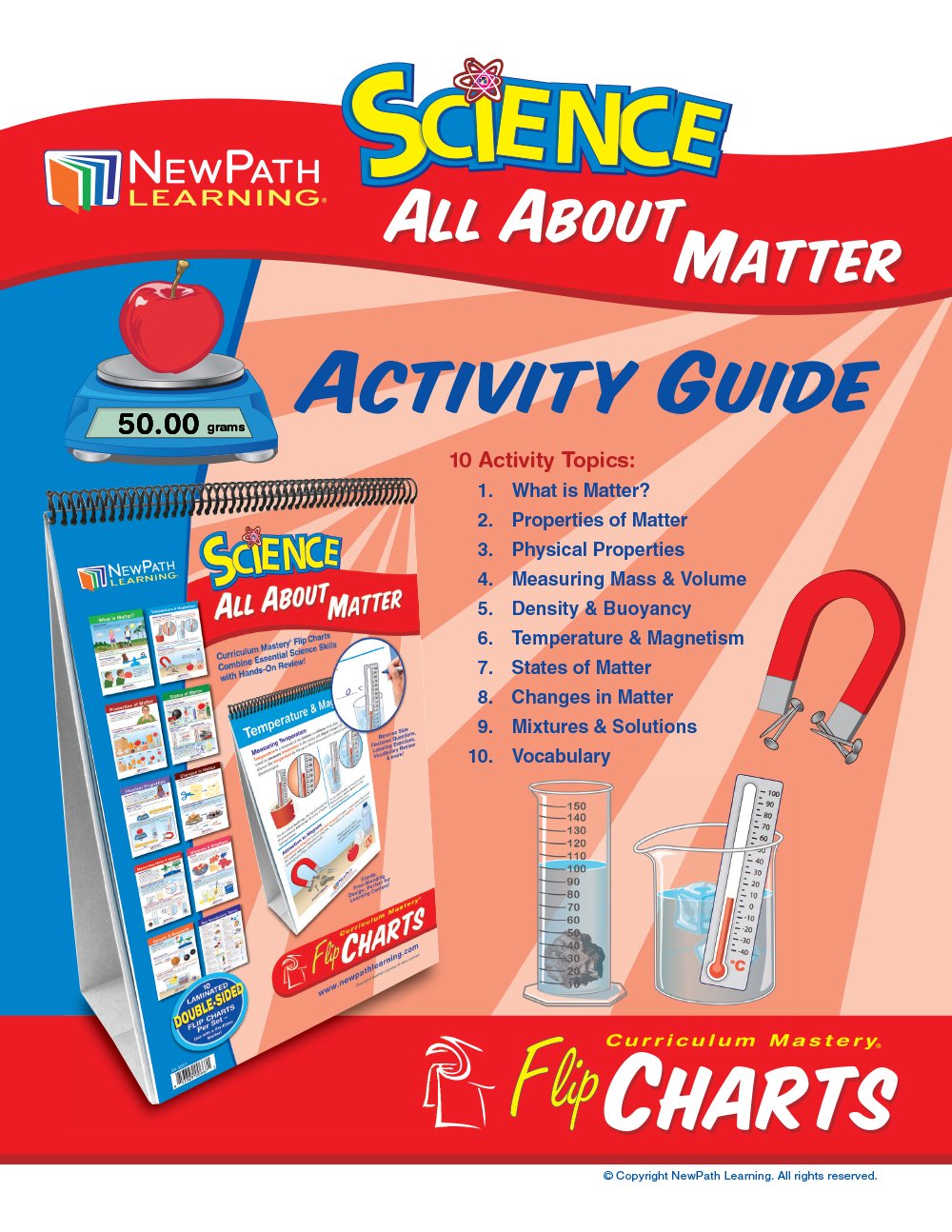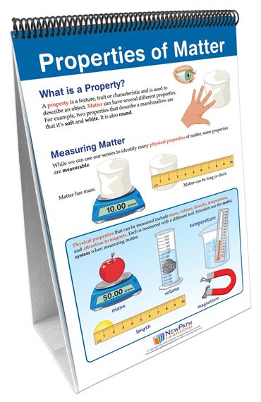 Introduce and review standards-based concepts on Matter. The set features 10 double-sided, laminated charts, each 12” x 18” and spiral-bound on a durable, free-standing easel. Side 1 of each chart features a graphic overview of topic while Side 2 serves as “write-on/wipe-off” activity chart. Also includes Activity Guide featuring copy-masters and exercises. Covers: What is Matter?; Properties of Matter; Physical Properties; Measuring Mass & Volume; Density & Buoyancy; Temperature & Magnetism; States of Matter; Changes in Matter; Mixtures & Solutions; and Vocabulary.