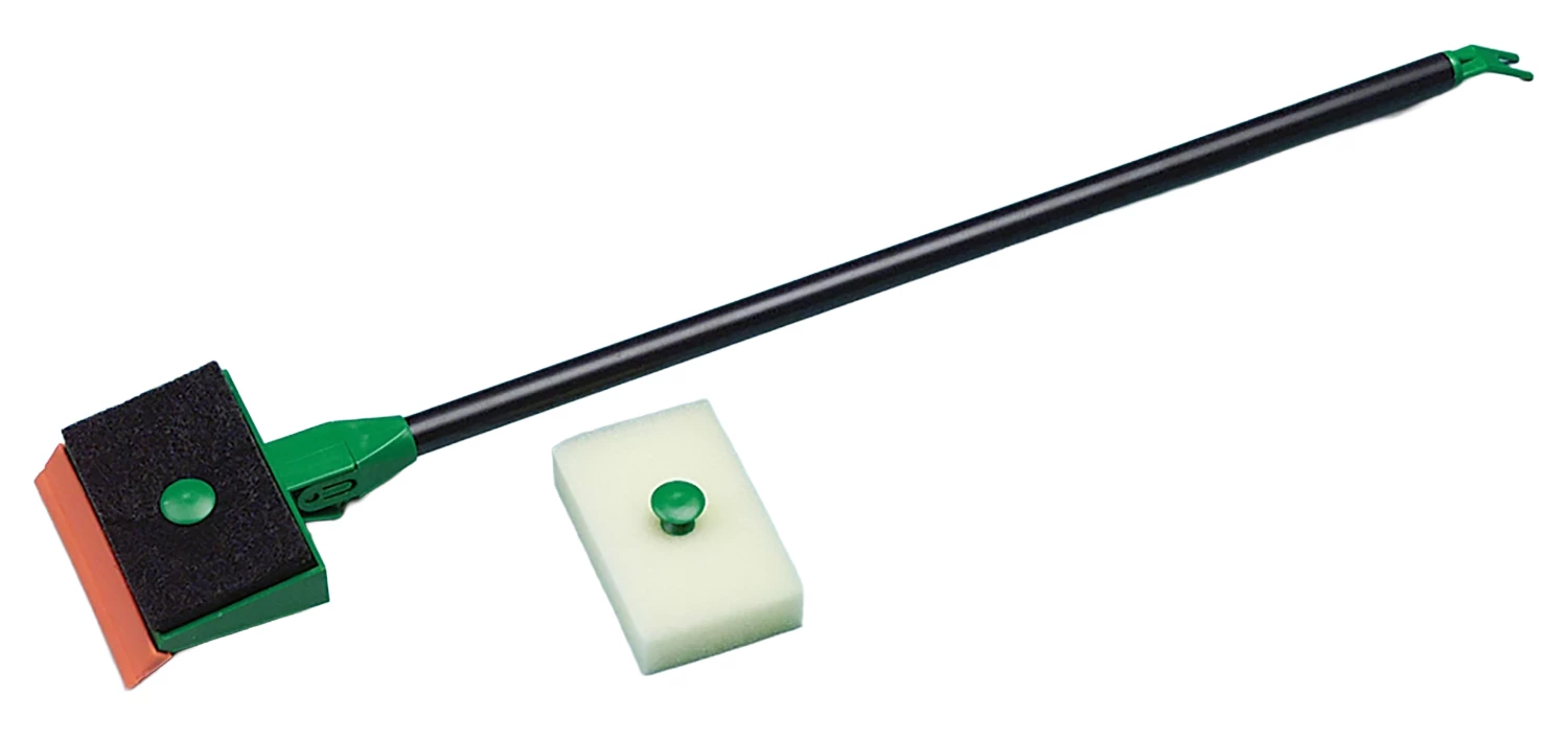 An effective cleaner, a non-scratching scraper, and a planting tool-all in one! The extra-long 38-cm handle keeps hands dry and permits access to all corners of the tank. Supplied with a coarse sponge for tough cleaning and a soft sponge for routine cleaning-both are reversible for extended wear. Extra wide molded-in scraper makes algae removal a breeze.