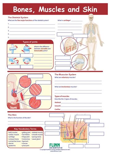 Bones, Muscles & Skin Visual Learning Guide provides comprehensive coverage. Each 11" x 17" laminated Write-On/Wipe-Off guide includes four panels of helpful information to engage students in the study of this topic.