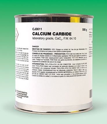 Exposure to water or moisture evolves flammable acetylene gas; corrosive to eyes and skin. 500 grams of calcium carbide will yield approximately 150 liters of flammable acetylene.
