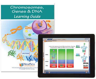 Your perfect blended learning solution for use in the Classroom or for Remote Learning/Home Study, the Chromosomes, Genes & DNA Student Learning Guide provides comprehensive coverage of a key, standards-based NGSS concept along with one-year online access to a corresponding Multimedia Lesson featuring in-depth, interactive coverage of the concept. The Multimedia Lesson can be accessed by a teacher and all of their students anywhere, anytime, on any device – including Chromebooks, tablets, computers and mobile devices!