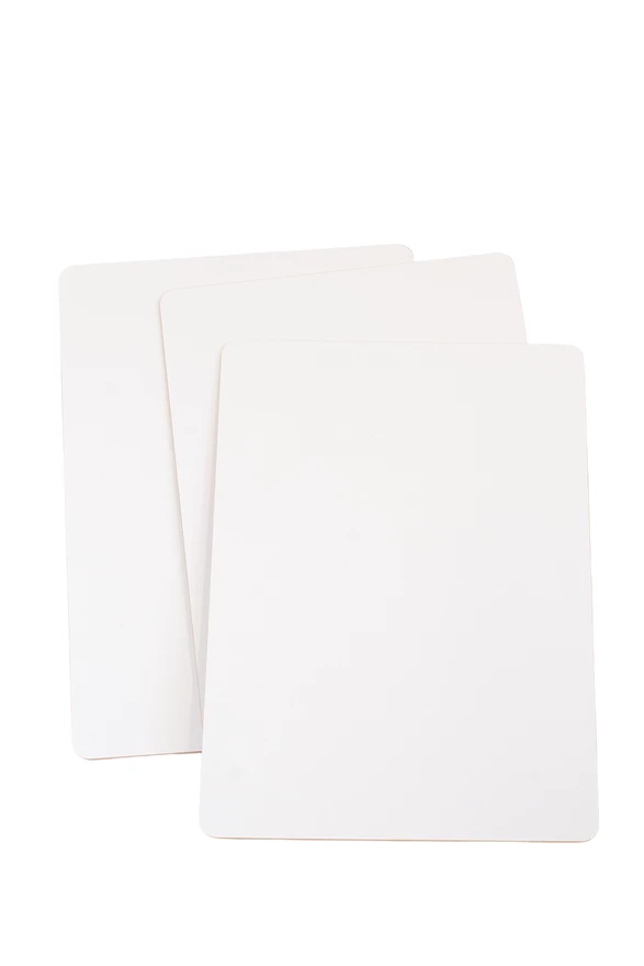 Dry erase boards allow you to check student understanding quickly. The boards have a white board surface and rounded corners for safety. The boards are easily erased with a soft paper towel or cloth. They come in a package of 12.