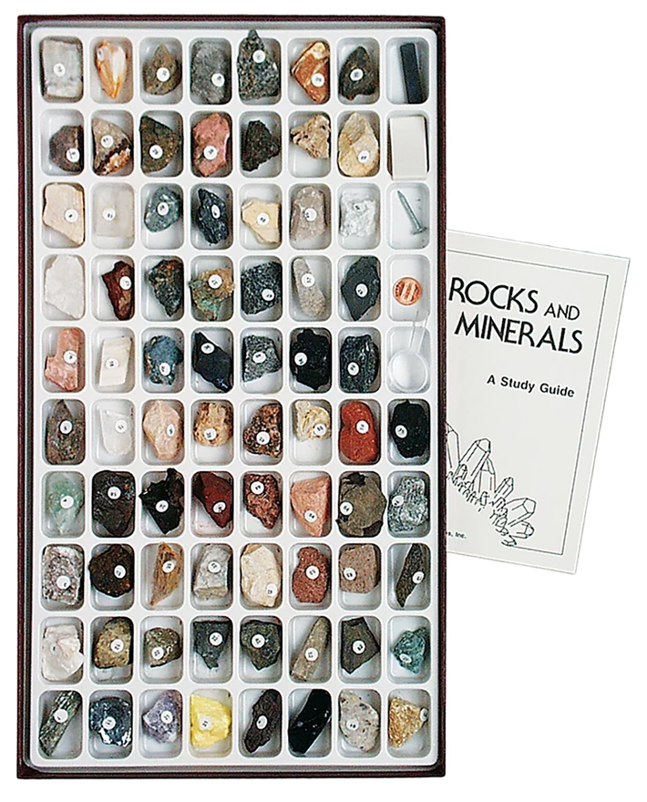 A comprehensive collection of rocks and minerals specifically designed for the high school earth science classroom. Specimens include rock-forming minerals, ores of metals and non-metals, and igneous, metamorphic and sedimentary rocks. Students can investigate additionally selected specimens for cleavage, fracture, streak, color and luster. A total of 75 specimens are provided and packaged in two compartmentalized collection boxes. All specimens are numbered and come with a mineral identification kit, study guide and key.