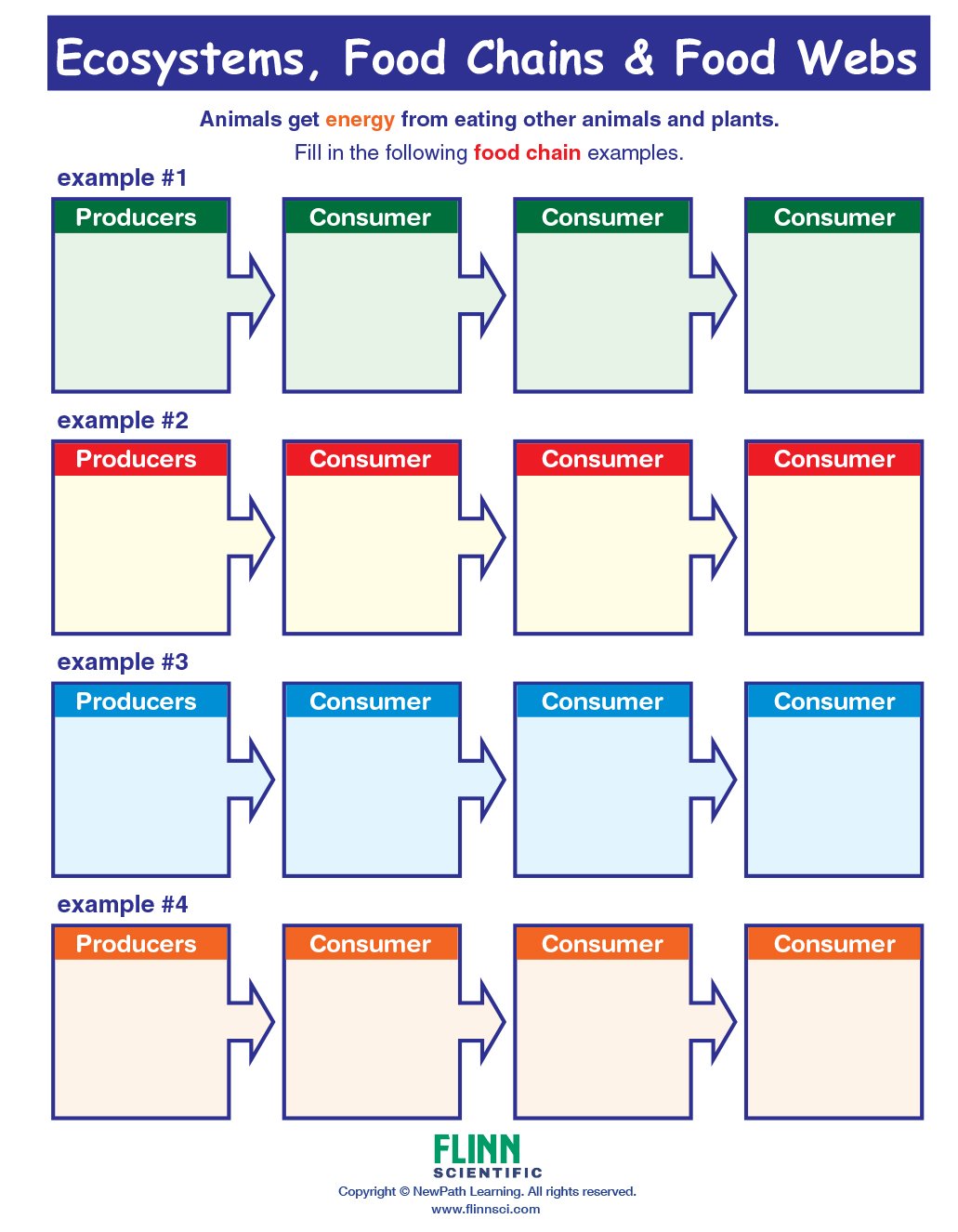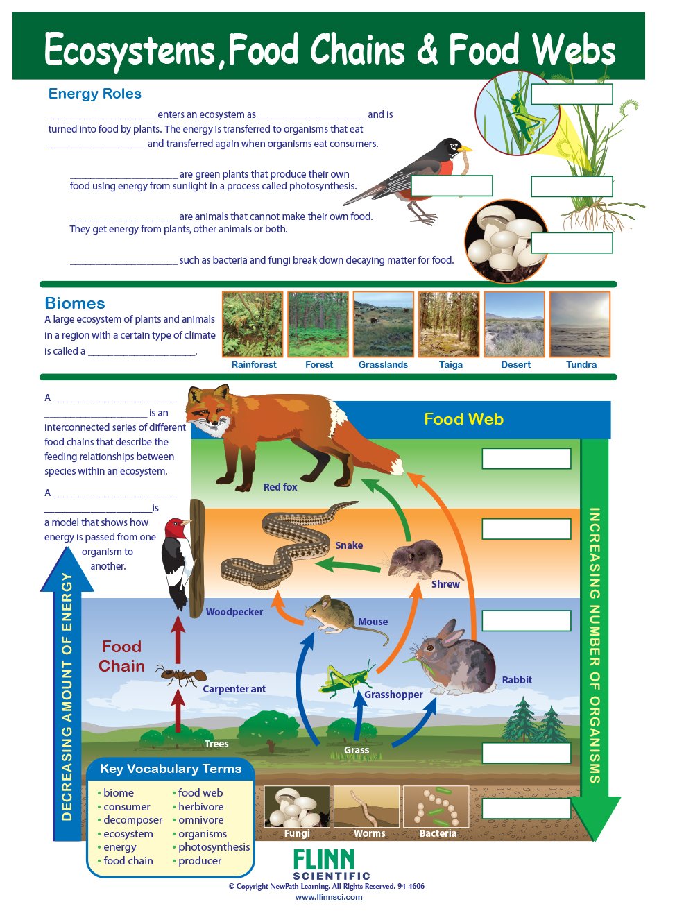 Ecosystems, Food Chains & Food Webs Visual Learning Guide provides comprehensive coverage. Each 11" x 17" laminated Write-On/Wipe-Off guide includes four panels of helpful information to engage students in the study of this topic.