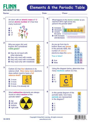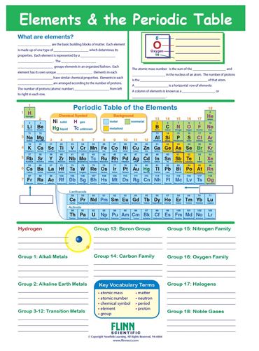 Elements & the Periodic Table Visual Learning Guide provides comprehensive coverage. Each 11" x 17" laminated Write-On/Wipe-Off guide includes four panels of helpful information to engage students in the study of this topic.