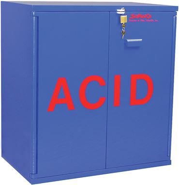 30" W x 32½" H x 18½" D. All cabinets are constructed of 1-inch exterior-grade plywood and finished with easily identified, chemically resistant paint. Individual cabinets may be placed under your work surface with a 32¼" clearance. Designed as stand-alone cabinets, but they may be stacked up to two units high. Cabinets have a liquid tight 2" trough to contain accidental spills and feature all wooden door hinges to eliminate hinge deterioration.