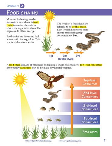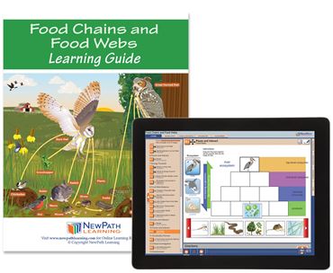 Your perfect blended learning solution for use in the Classroom or for Remote Learning/Home Study, the Food Chains & Food Webs Student Learning Guide provides comprehensive coverage of a key, standards-based NGSS concept along with one-year online access to a corresponding Multimedia Lesson featuring in-depth, interactive coverage of the concept. The Multimedia Lesson can be accessed by a teacher and all of their students anywhere, anytime, on any device – including Chromebooks, tablets, computers and mobile devices!