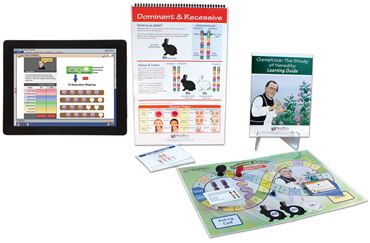 Complete blended learning resource system - Covers current state & national science standards - including Next Generation Science (NGSS)! NewPath’s Genetics: The Study of Heredity Curriculum Learning Module provides a complete set of visual, digital and hands-on resources designed to support teacher instruction and provide students with the skills to master key concepts on Genetics & Heredity. Used in combination or individually, your students will gain thorough comprehension from an engaging blend of technology-based instruction, interactive print resources, and game-based learning. Includes detailed, standards-based coverage of: Inheritance of Traits; Chromosomes & Karyotypes; Gregor Mendel; Mendel’s Experiments; Dominant & Recessive Traits; Punnett Squares; Phenotypes & Genotypes; Codominance; and Making a Pedigree. Module includes: 1 Flip Chart Set with 10 double-side, laminated charts including a graphic overview and “write-on/wipe-off” activities; 1 Student Learning Guide featuring self-directed readings, illustrated explanations, assessment questions and a lab investigation; 1 Vocabulary Review Card Set; 1 Curriculum Mastery Game (4 players); and access to web-based Interactive Multimedia Lesson containing animated tutorials, interactive activities, visual resources, illustrated narrated glossary, virtual labs, and assessments.