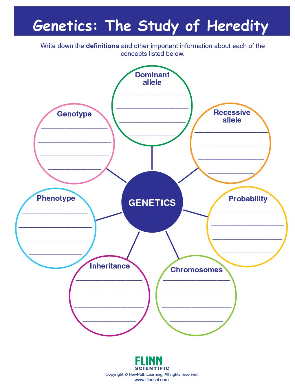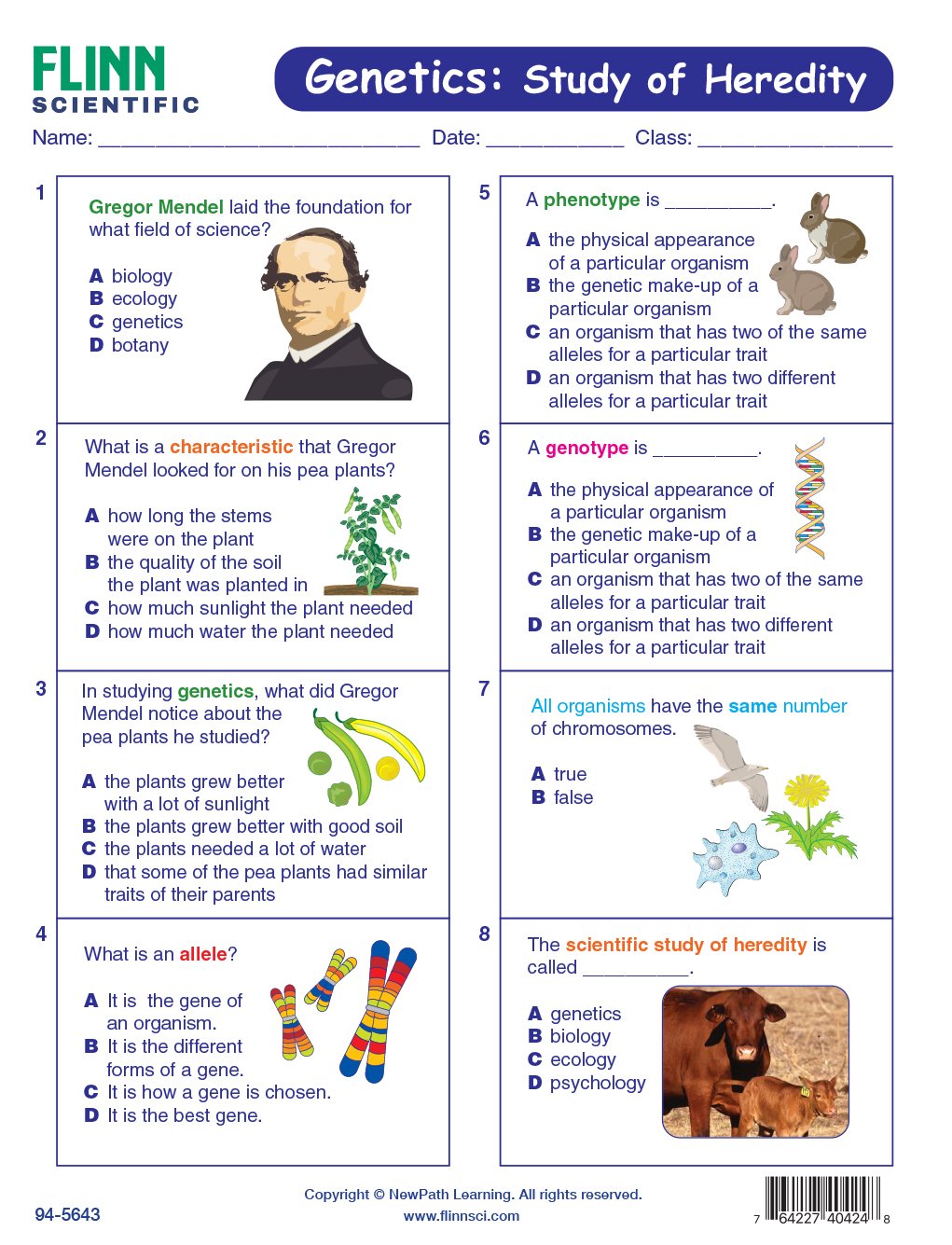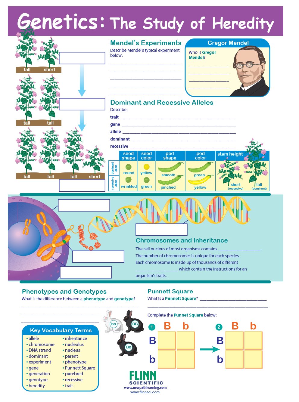 Genetics - The Study of Heredity Visual Learning Guide provides comprehensive coverage. Each 11" x 17" laminated Write-On/Wipe-Off guide includes four panels of helpful information to engage students in the study of this topic.