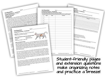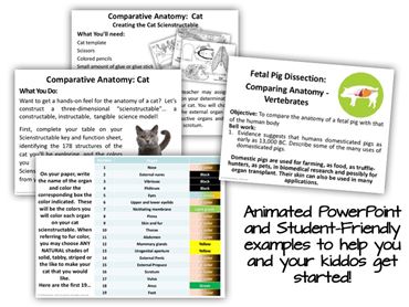 The Getting Nerdy® Science 3D Scienstructable cat dissection model can be used as dissection-free exploration, predissection tools or summative assessments for comparative anatomy. Each model includes 36 editable PowerPoint slides with bellwork, instructions, and embedded handout answer keys and 40 PDFs of handouts, guided reading, differentiated graphic organizers and dissection templates in black line and color. Time required: 4–5 days.