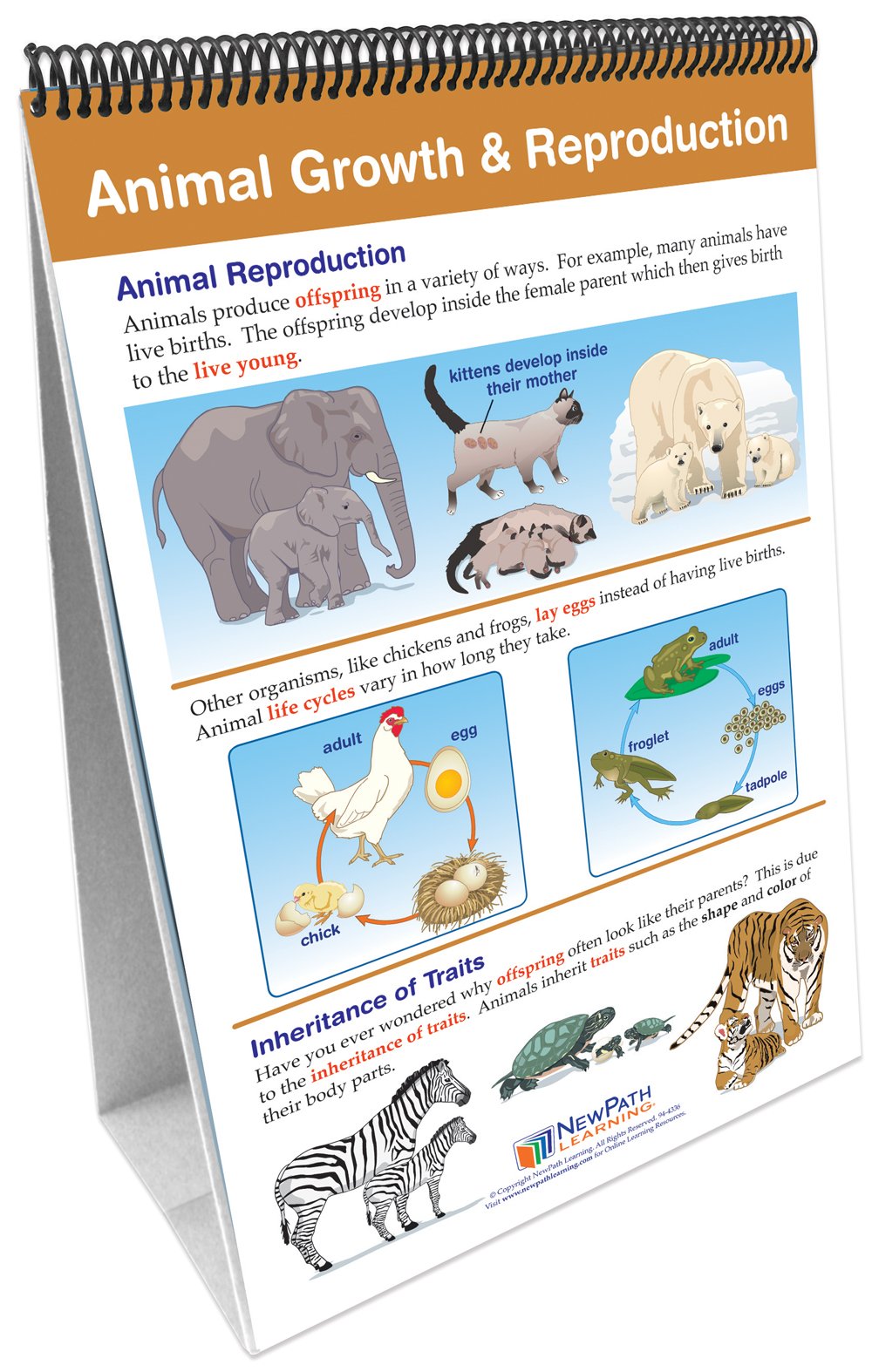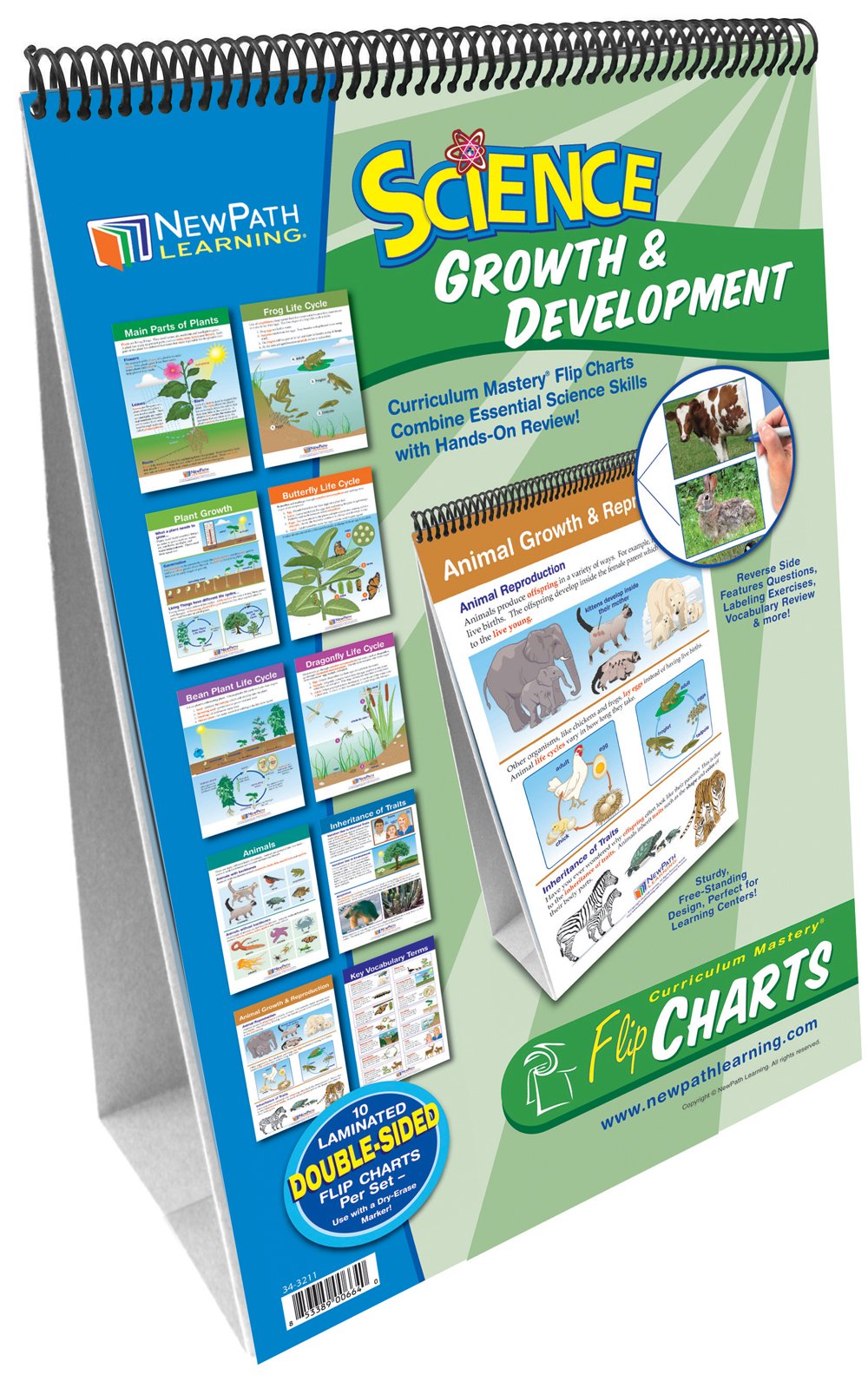 Introduce and review standards-based concepts on Growth & Development of Plants & Animals. The set features 10 double-sided, laminated charts, each 12” x 18” and spiral-bound on a durable, free-standing easel. Side 1 of each chart features a graphic overview of topic while Side 2 serves as “write-on/wipe-off” activity chart. Also includes Activity Guide featuring copy-masters and exercises. Covers: Main Parts of Plants; Plant Growth; Bean Plant Life Cycle; Animals; Animal Growth & Reproduction; Frog Life Cycle; Butterfly Life Cycle; Dragonfly Life Cycle; Inheritance of Traits; and Vocabulary.