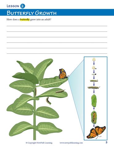 Covers: Main Parts of Plants; Plant Growth; Bean Plant Life Cycle; Animals; Animal Growth & Reproduction; Frog Life Cycle; Butterfly Life Cycle; Dragonfly Life Cycle; Inheritance of Traits; and Vocabulary.
