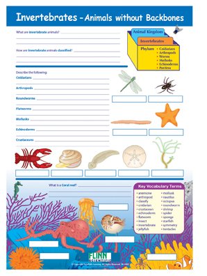 Invertebrates—Animals Without Backbones NewPath Visual Learning Guide provides comprehensive coverage of invertebrates. Each 11" x 17" guide includes four panels of helpful information, including an overview, practice exercises, a graphic organizer and assessment and review questions. Each laminated Write-On/Wipe-Off guide provides an engaging way to study invertebrates. Set of 10.
