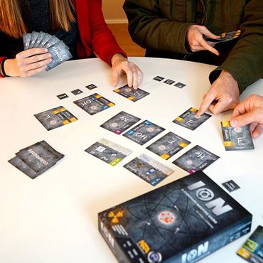 Ion: A Compound Building Game is a highly competitive card drafting game for chemistry.  Each turn players select an atom or ion card to add to their collection. At the end of each round, points are scored for all neutral compounds, with bonus points awarded for completing special objective cards.
