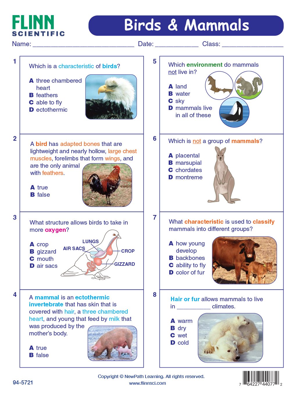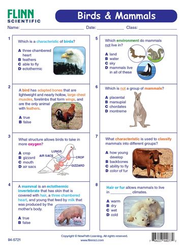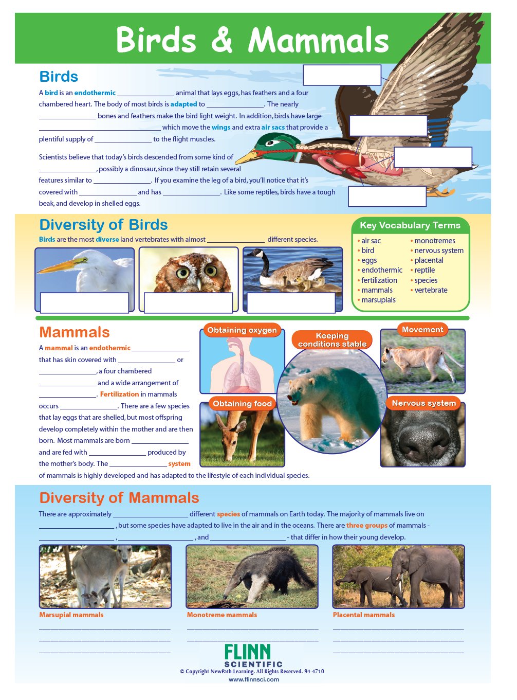 Mammals & Birds Visual Learning Guide provides comprehensive coverage. Each 11" x 17" laminated Write-On/Wipe-Off guide includes four panels of helpful information to engage students in the study of this topic.