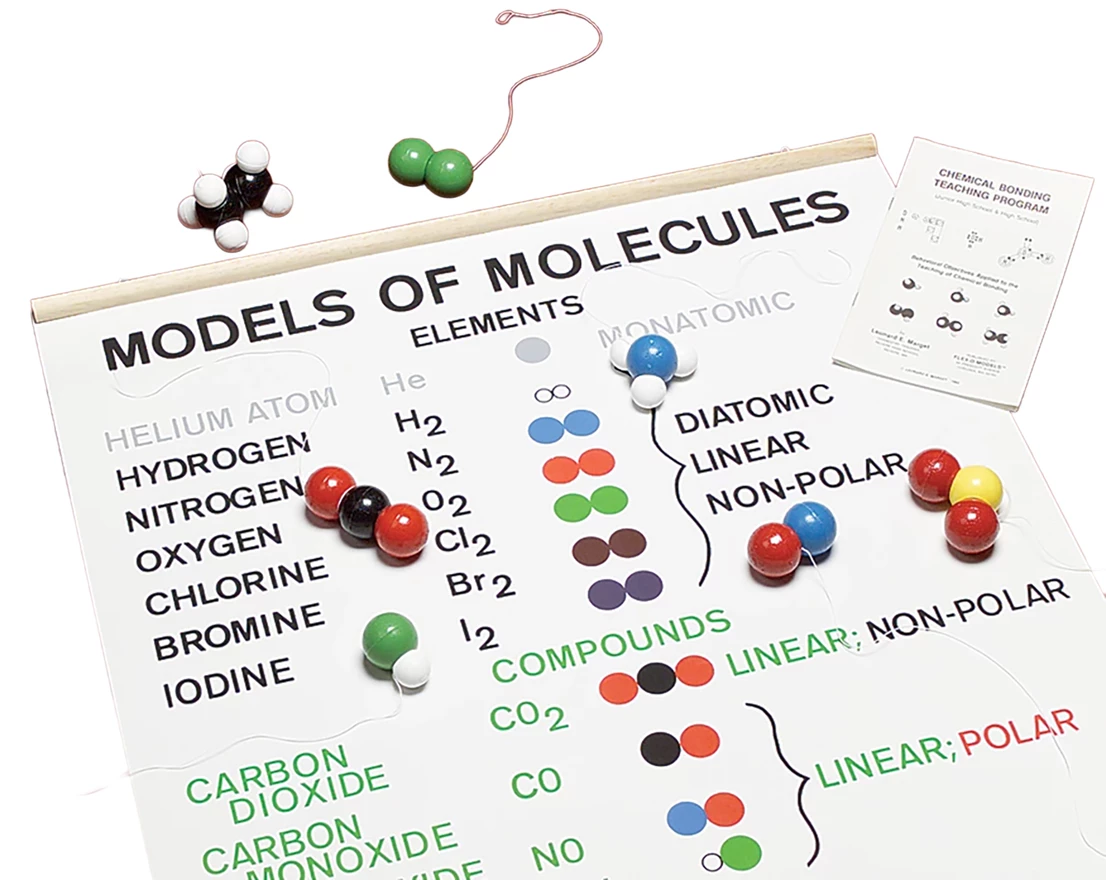 The Models of Molecules and Chart Set contains 18 miniature models and a color poster. The poster contains 18 commonly studied molecules including their molecular geometry and polarity. This set is a great addition to any chemistry laboratory!