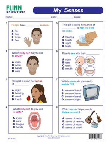 My Senses NewPath Visual Learning Guide provides comprehensive coverage of the five senses. Each 11" x 17" guide includes four panels of helpful information, including an overview, practice exercises, a graphic organizer and assessment and review questions. Each laminated Write-On/Wipe-Off guide provides an engaging way to study the five human senses. Set of 10.
