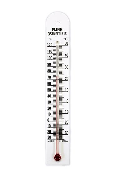 Plastic-backed thermometer reads in both Celsius and Fahrenheit scale. (+/-) 2° accuracy; non-toxic.