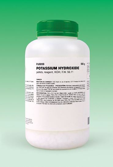Skin contact causes severe blisters; strongly corrosive as a solid and as a solution; very harmful if swallowed; extremely dangerous to eyes. LD50 273 mg/kg. TLV-C 2 mg/m3. SPECIALHAZARD ALERT: Wear appropriate face and body protection when making solutions; potassium hydroxide generates large amounts of heat while dissolving. You might consider immersing your solution-making vessel in an ice bath. The ice bath will better enable you to control the solution temperature. Stir continuously.