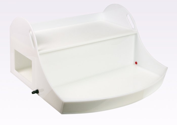This convenient carboy spill tray is designed for laboratory carboys and other large containers with spigots. The tray is made with 1/4" thick chemically resistant HDPE. It provides a safer way to dispense liquids in lab and protects cabinets, lab benches and floors from liquid spills. Each carboy spill tray contains two convenient drain ports, 1/2" tubulation and built-in side handles for convenient transport. 8" shelf height can accommodate up to a 5000 mL beaker.