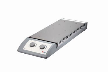Space saving units with multiple stirring positions and speed control channels. Stainless steel work plate has a silicon cover to provide excellent traction.
