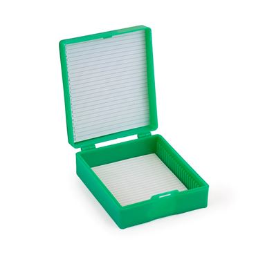 Plastic Microscope Slide Storage Box is a durable molded plastic slide storage box that will withstand day-to-day student use. Protect 25-100 slides for the price of one replacement slide.