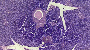 Islets of Langerhans Microscope Slide contains section of mammalian pancreans to show cells specialized for the production of insulin-hormone responsible for the regulation of blood glucose levels. Explore the endocrine system.