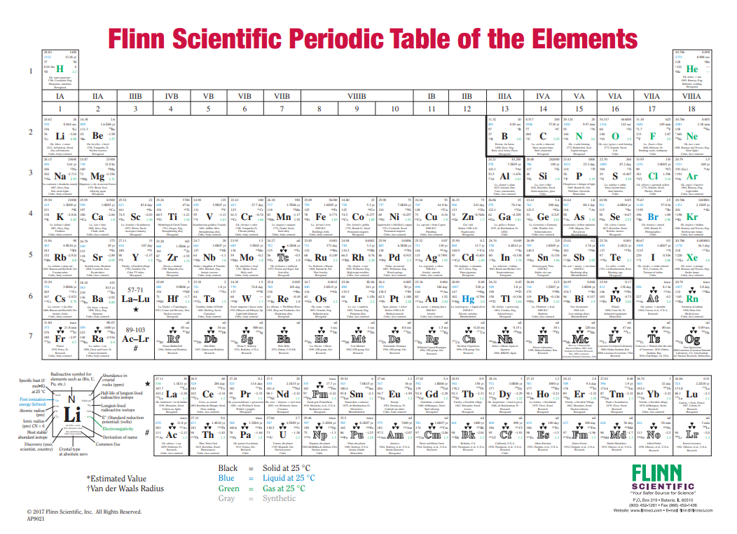 The Flinn Periodic Table Chart is a direct result of teacher feedback! We asked the best chemistry teachers for feedback and incorporated their suggestions into a new periodic table! You asked; we delivered!