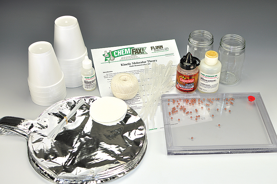 The Kinetic Molecular Theory Chemical Demonstration Kit puts molecules in motion, in three parts. Visualizing molecules in motion helps students understand and compare the kinetic and potential energy of molecules in different phases.