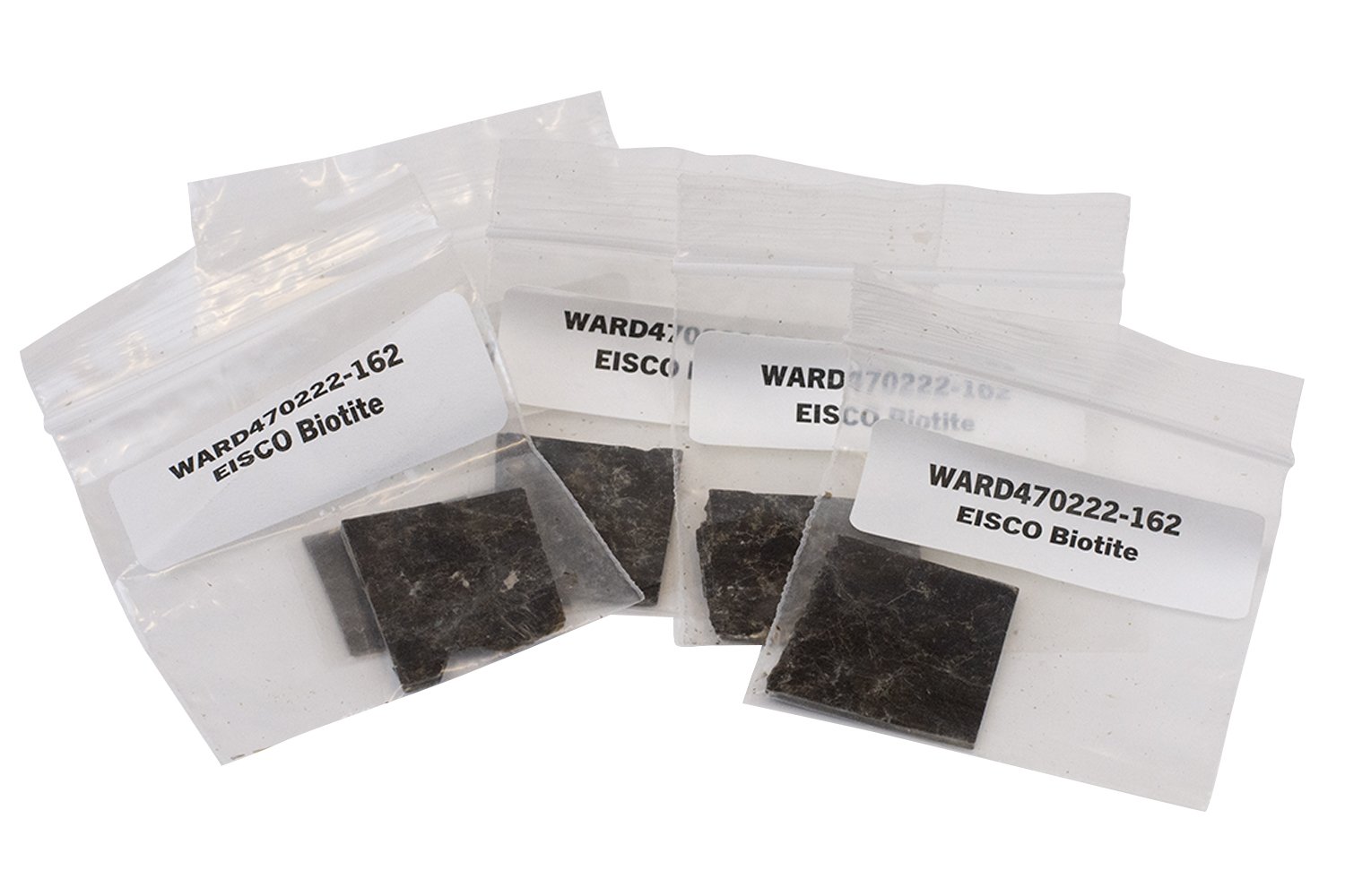 Biotite mineral specimens are 2–3 cm in size. Real mineral specimens are great for geology class! Sold as a package of 10.