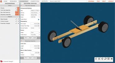 Then it’s finally time to compete in the Virtual Racing Competition! In this competition portion of the activity, students see how their designs measure up against each other. After completing their design and applying any improvements, the Outputs section creates a drawing for a physical build of the mousetrap cars. Drawings, a design specifications report and a bill of materials report can be found in this section. Now that students have conquered the virtual world, it’s time to Build and Test the mousetrap cars in the physical world. Using the included materials, students use the instructions and tips in this section to build a physical representation of their design.