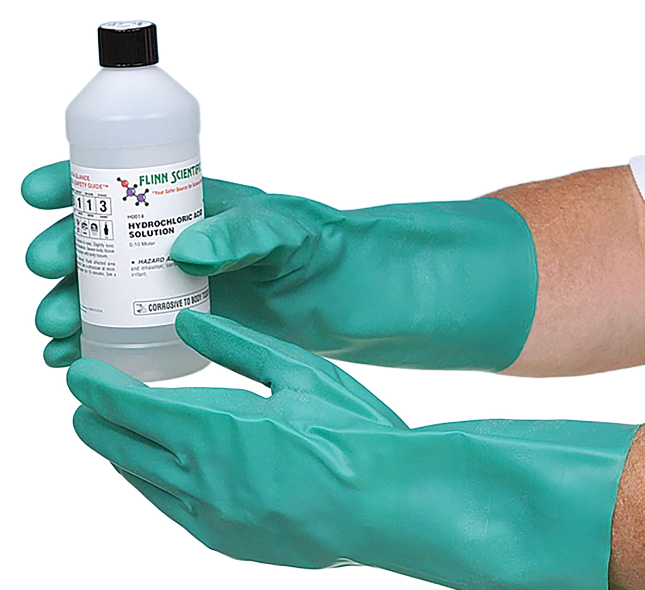 Perfect for when you need longer coverage on the arm, nitrile acid-resistant gloves for lab safety are unlined with a reinforced cuff. Nitrile is superior to rubber or neoprene particularly with acids and bases and is also the ideal choice for those with latex allergies since nitrile contains no natural rubber proteins. Fingers are tapered. Glove is 13" long, providing good lower arm protection.