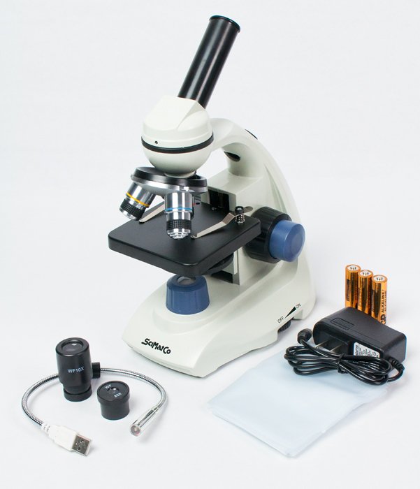 Hot deal! Limited quantity available! Affordable, compact microscope fits in tight spaces and budgets. This ¾-size microscope has three DIN achromatic objectives with 4X, 10X and 40X magnification.
