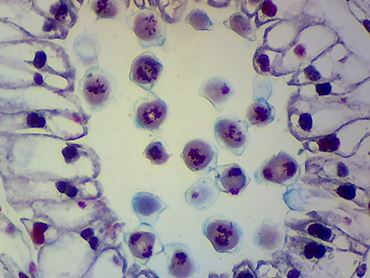 Lilium Anthers Microscope Slide contains anthers with first meiotic divisions.