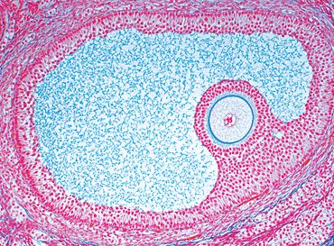 sec. Section from a young mammal, shows a large number of primary follicles.
