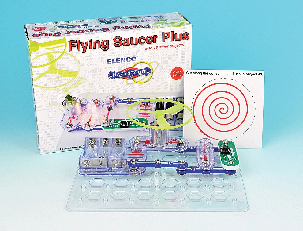 In the Snap Circuits® Flying Saucer, build circuits by snapping special electronic blocks onto a grid to create different electronic effects. Easy, affordable, and educational.