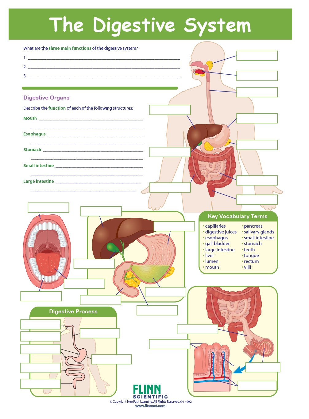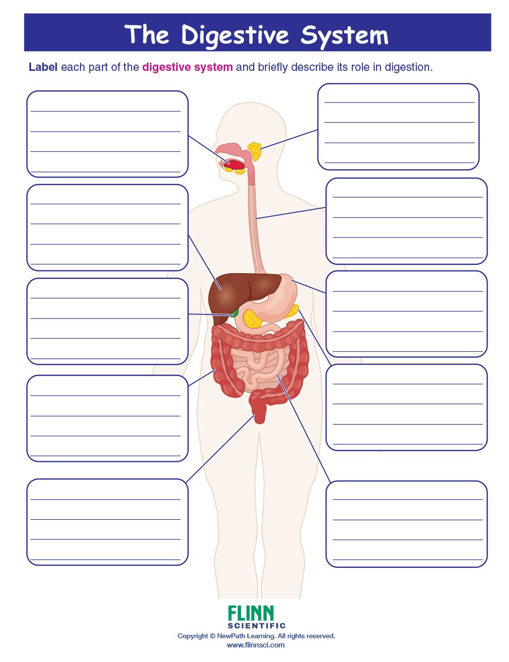 The Digestive System Visual Learning Guide provides comprehensive coverage. Each 11" x 17" laminated Write-On/Wipe-Off guide includes four panels of helpful information to engage students in the study of this topic.