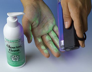 Glowing Germ Contamination Demonstration Kit for microbiology is a perfect activity for illustrating the importance of good laboratory hygeine in biology, microbiology, and chemistry classes alike.