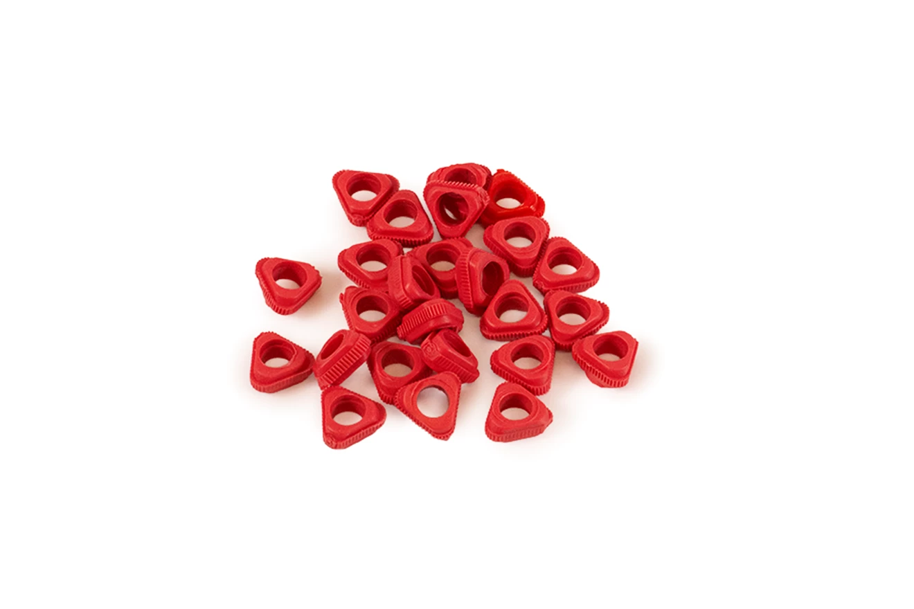 The anti-roll-off device for thermometers is a simple and effective plastic sleeve that easily slips onto the end of any standard laboratory thermometer to prevent bench roll-off and breakage. The devices fit all thermometers.