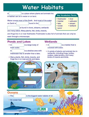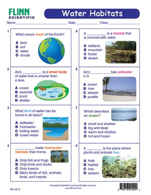 Water Habitats NewPath Visual Learning Guide provides comprehensive coverage of the habitats found in water. Each 11" x 17" guide includes four panels of helpful information, including an overview, practice exercises, a graphic organizer and assessment and review questions. Each laminated Write-On/Wipe-Off guide provides an engaging way to study water habitats. Set of 10.