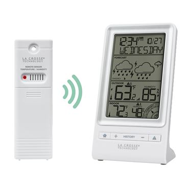 Easy to read, easy to program, and affordable. Data updates every 30 seconds giving you an accurate weather picture. Displays both outside and inside temperatures as well as a min/max temperature that can be easily reset. Weather forecasting icons and weather tendency indicator is determined by a barometric pressure reading that causes the icon to change when a significant change in pressure occurs. Wireless sensor transmits weather data 330 feet and does not need to be by a window. Wall hanging or free standing. Requires 2 AA batteries for the receiver and 2 AA batteries for the sensor, sold separately.