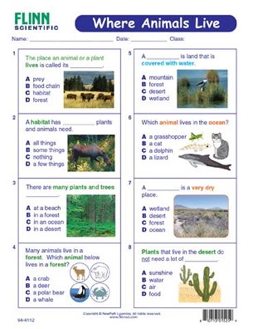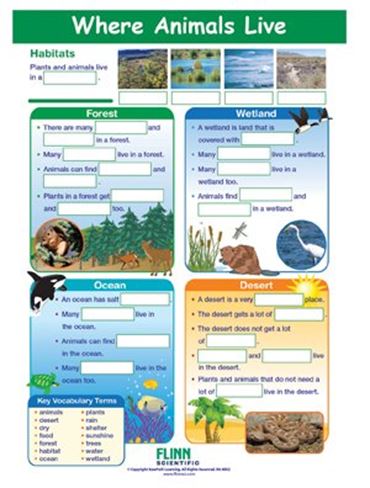 Where Animals Live NewPath Visual Learning Guide provides comprehensive coverage of the habitats of animals. Each 11" x 17" guide includes four panels of helpful information, including an overview, practice exercises, a graphic organizer and assessment and review questions. Each laminated Write-On/Wipe-Off guide provides an engaging way to study where animals live. Set of 10.
